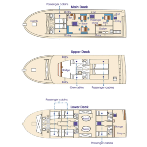 Die Kabinen werden nach dem Prinzip “first come, first served” vergeben. Wenn Sie eine Kabine auf dem Oberdeck wünschen, empfehlen wir eine frühzeitige Buchung und Rücksprache zur Verfügbarkeit.